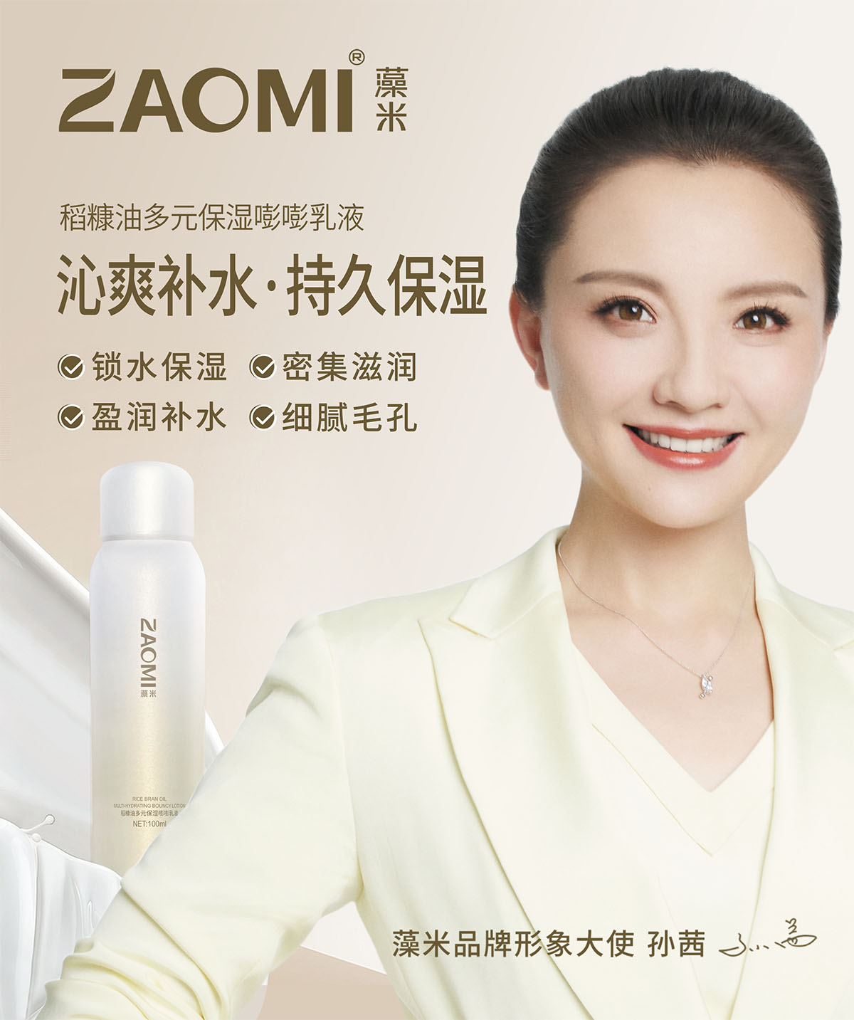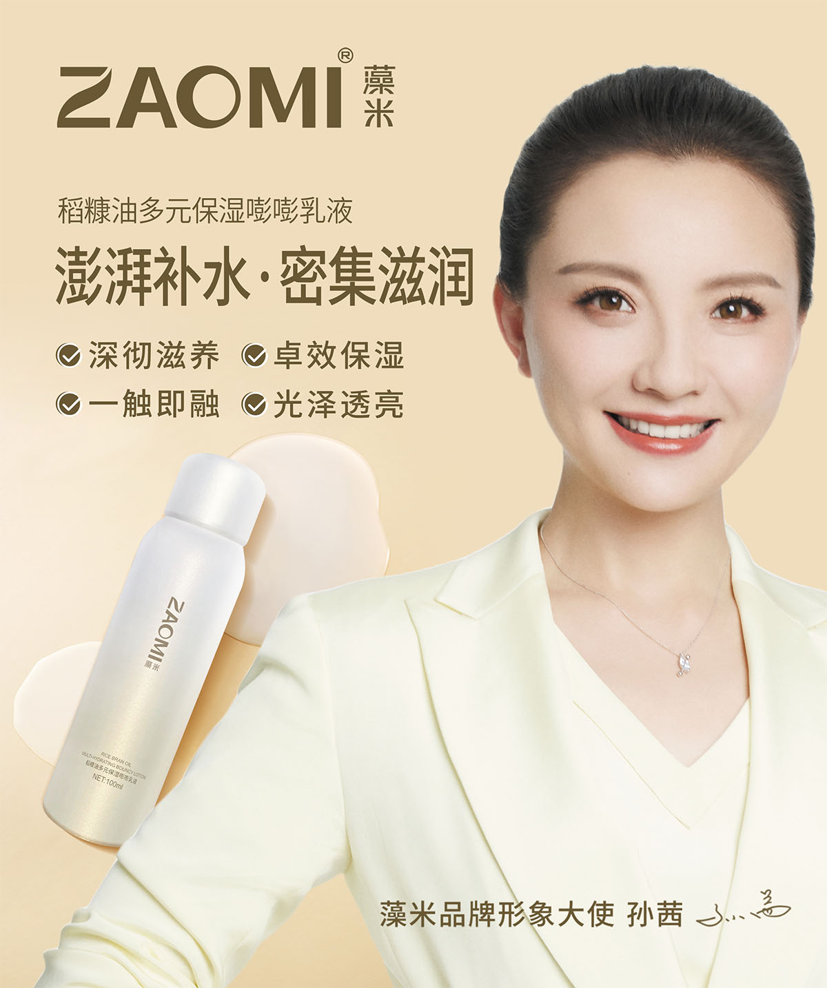 雪花冰激凌质地的泡泡乳,滋润保湿不黏腻,卵磷脂液晶乳化柔软亲肤绵密的质感,富含稻(ORYZA SATIVA)糠油、角鲨烷、生育酚乙酸酯、海藻糖、水解透明质酸钠等滋润保湿成分,且添加了长茎葡萄蕨藻、水解大米、积雪草、二裂酵母发酵产物滤液、石榴果等提取物,让产品更加多元优效的保湿润肤。