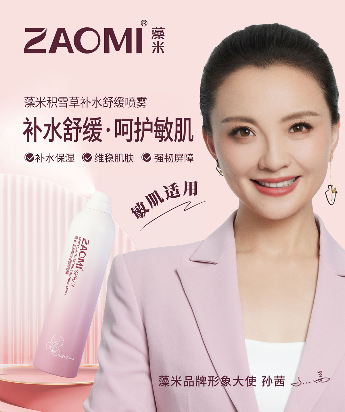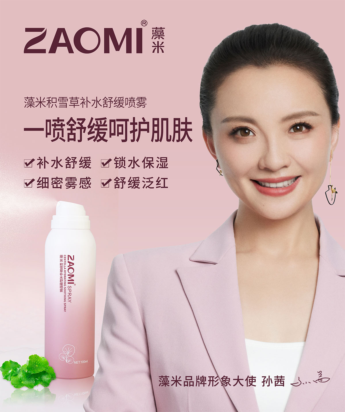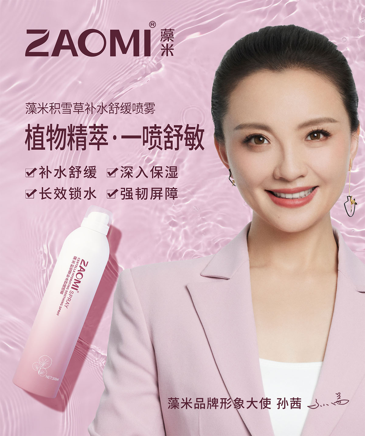 富含多种植物活性成分,添加了龙胆(GENTIANA SCABRA)根提取物、马齿苋(PORTULACA OLERACEA)提取物、积雪草(CENTELLA ASIATICA)提取物等舒缓成分,同时添加了藻米的核心成分长茎葡萄蕨藻(CAULERPA LENTILLIFERA)提取物、水解大米提取物,使肌肤保湿盈润,舒缓肌肤。雾感绵密,令肌肤即刻沁润舒缓,加速活性成分的吸收,给予肌肤水润,柔滑嫩肤呈现水嫩美肌。